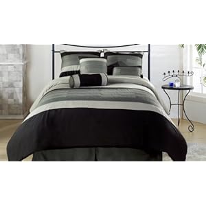 - 7pc Duvet Cover! (Duvet Cover, 2 Shams, Neck roll, 2 Decorative Pillows, Bed skirt)